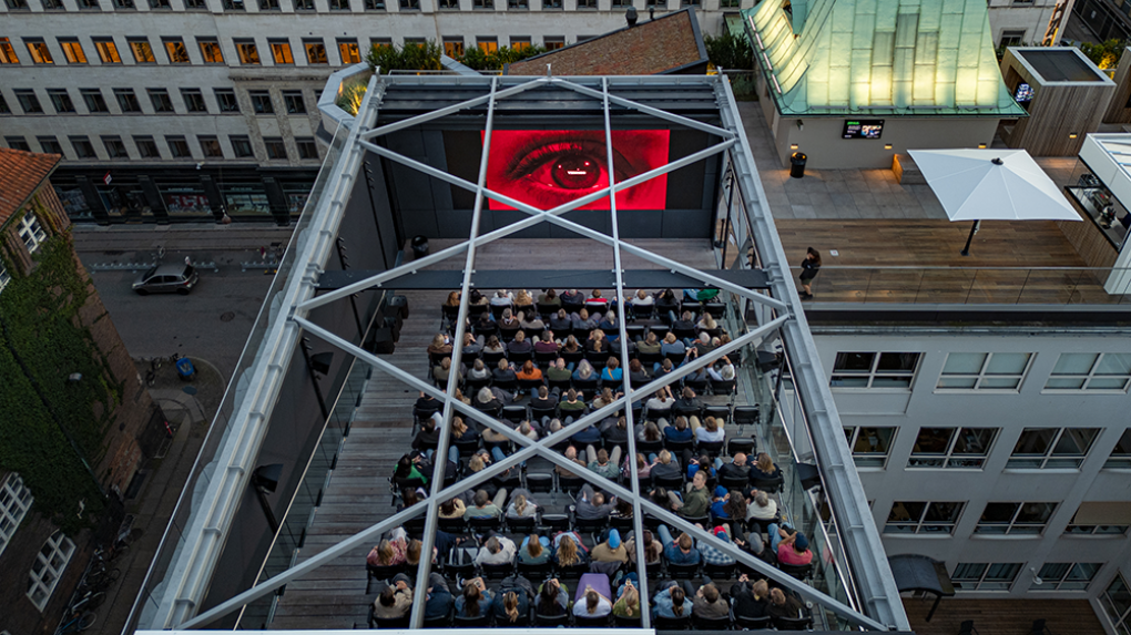 Himmelbio er integreret i Filmtaget – Cinematekets 1.700 m² store tagterrasse. Her får I mulighed for at udvide arrangementet med pauser i det fri, loungeområder og ekstra aktiviteter.
