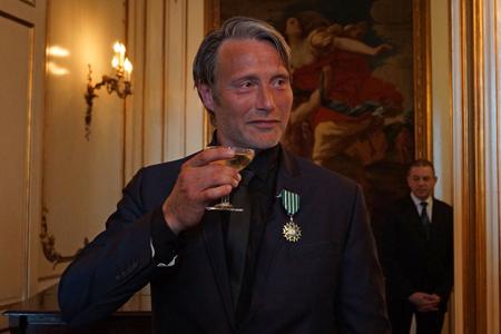 Mads Mikkelsen and Thomas Vinterberg were appointed Knight of the “Ordre des Arts et des Lettres” by the French Ambassador François Zimeray at a ceremony at the French Embassy in Copenhagen on Wednesday night. Here, Mikkelsen highlighted his connection to the Cannes festival: