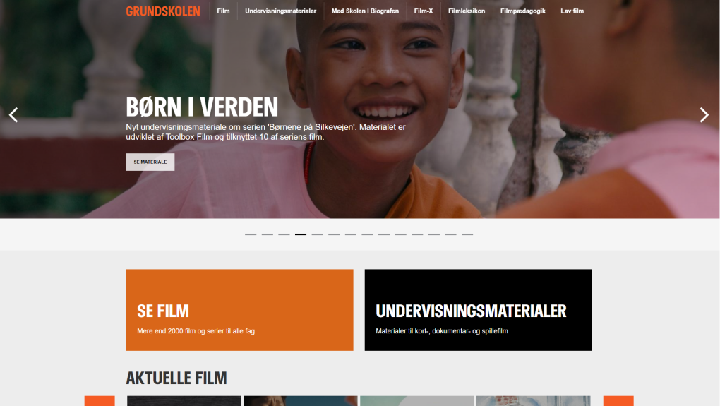 Online Platform FILMCENTRALEN – streaming site and educational resources School Cinema MED SKOLEN I BIOGRAFEN – quality films in local cinemas nationwide Film studios FILM-X – interactive film studios for creative film learning