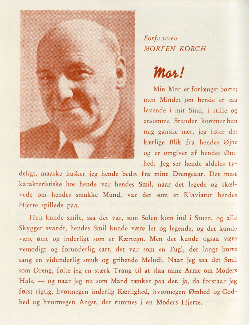 Man må antage, at de Morten Korch’ske strenge, der her anslås, har ramt en stærkere klangbund i danske læsere end førerforherligelsen i Jannings’ ærefrygtige ord om Paul Krüger, alene fordi Morten Korchs hjemstavnsromantiske bøger storsolgte i samtidens Danmark. Korch selv indviede Ufa-Programmets læsere i sin skælvende moderkærlighed i en lille artikel, som propaganderede for Ufa-filmen Annelie (1941),’Historien om en Moder – en Hyldest til alle Mødre’, som Ufa skrev (2. årgang, nr. 12). Korch lod dermed sin berømmelse, sin folkelige appel og sin moderkærlighed tynge i vægtskålen til fordel for tysk filmpropaganda i det besatte Danmark.