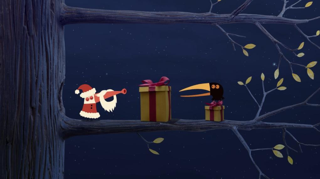 De to små fugle bruger hver dag i træet. De har ofte konflikter, men bliver heldigvis lige så ofte gode venner igen. Det er jul, og fuglene skriver ønskesedler. De falder i søvn, og da de vågner op, finder de kun én pakke under juletræet. Hvem er gaven til?