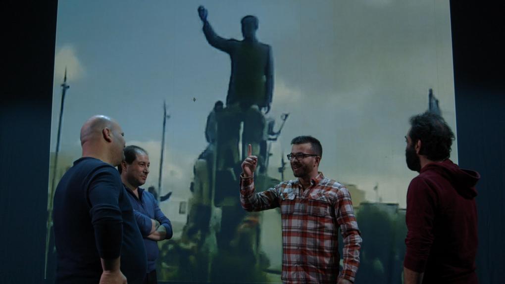 "Nej, de vidste kun, at det hovedsageligt var baseret på deres eget materiale fra Daraa. Vi ville gerne fange deres reaktion i øjeblikket, men også eksperimentere med, om det kunne lade sig gøre at skabe et Syrien uden for Syrien: et sted, hvor de kunne tale om deres oplevelser på sikker afstand, men på den anden side en oplevelse af, at man nærmest kan gå ind i lærredet og føle, at man er i Syrien. Vi forsøgte at lege med mediet på en måde, hvor man kan bevæge sig frem og tilbage i tid og sted."
