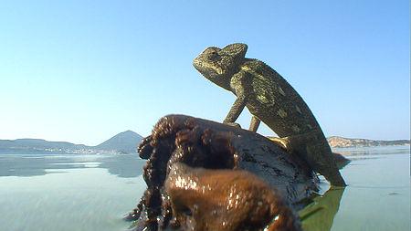 Ved en græsk lagune lever cirka 300 afrikanske kamæleoner som de eneste eksemplarer af slagsen i hele Europa. "Kamæleonernes strand" viser de små krybdyrs ulige kamp mod mennesket, der invaderer og ødelægger kamæleonernes naturlige habitat. På dyrenes side er kun strandvagterne, der gør alt for at beskytte dyrene mod turister, mens autoriteterne vender det blinde øje til.