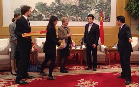 Den danske delegation mødtes i Beijing med direktør Tai Fuschau fra den det kinesiske State Administration for Press, Publication, Film og, Radio and Televison.