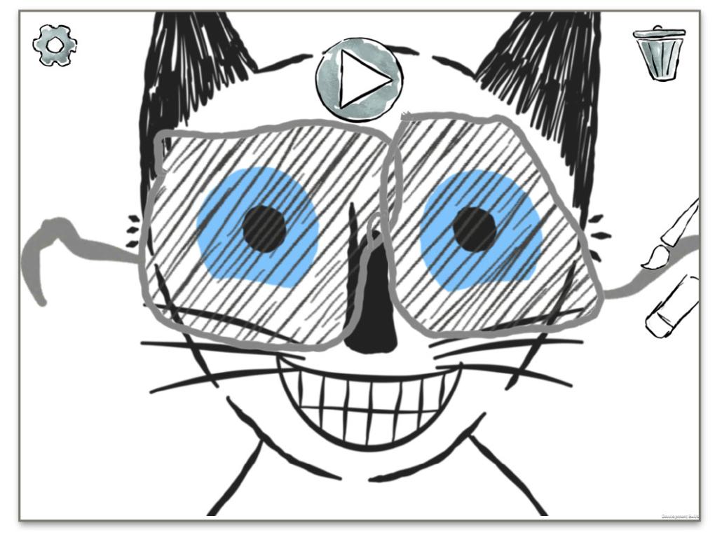 Spillet MIS MED DE BLÅ ØJNE bygger på Egon Mathiesens litterære klassiker til mindre børn. Spillet kombinerer den – for de voksne - velkendte og fabelagtige fortælling med en række kreative spilaktiviteter, hvor barnet kan tegne elementer, der naturligt interagerer med fortællingen, og hermed indtræder barnet som medillustrator og en slags igangsættende medfortæller af den ellers lineære historie.