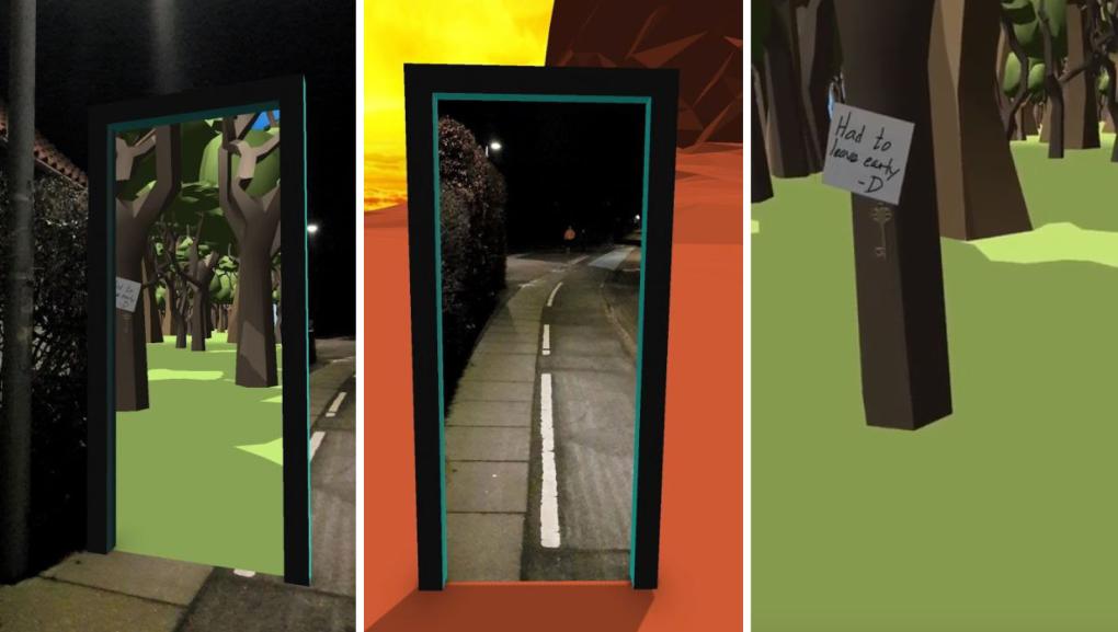 THE DOOR er et gådespil, der opleves på mobilen, og som benytter augmented reality teknologi. Spillet leger med koblingen mellem det konkrete fysiske sted spilleren befinder sig og så introduktionen af et virtuelt rum, som spilleren fysisk kan vandre ind i og udforske. Centralt for overgangen mellem den fysiske og den virtuelle verden er en virtuel dør, der fungerer som portal mellem den realistiske og den magiske verden.