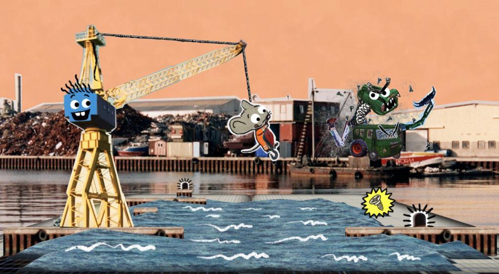 MUS & KRAN er et børnespil til de 6-7-årige, og handler om de to venner ’mus’ og ’KRAN’. Mus er en nysgerrig lille mus i kedeldragt, og KRAN en stor og levende kran, der nok er stærk, men ikke tør helt så meget som den lille mus. Begge er mere end almindeligt begejstrede for maskiner og værktøj, og ethvert nyt eventyr begynder med udsigten til at få fat på et nyt stykke funklende værktøj. Spillet foregår i et havnemiljø inspireret af den gamle Nordhavn i København, hvor både fiskere, skrotplads og industri kunne findes side om side.