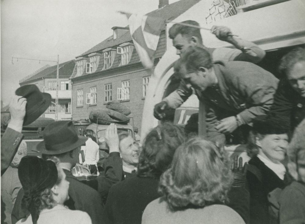 Befrielsesdagenes sejrsrus - still fra 'Danmark i Lænker'.
