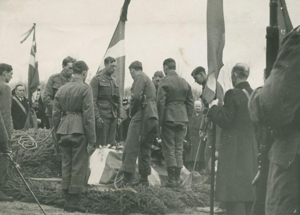 "Den danske soldats mod og pligtfølelse vil altid lyse over deres grave". Still fra 'Danmark i Lænker'.