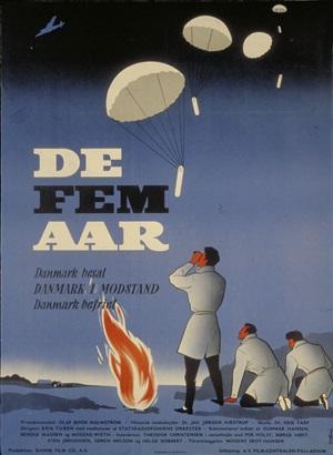 Men det var ikke disse film, der skulle blive de helt store leverandører af scener til efterkrigstidens kollektive hukommelse. Det var derimod to film fra henholdsvis Dansk Film Co. og Minerva Film, som havde været primusmotorer i besættelsestidens illegale filmarbejde, 'Danmark i Lænker' (1945) og 'Det gælder din Frihed' (1946). Klip fra disse to film, som begge fik landsdækkende biografdistribution, dannede grundstammen i filmen 'De Fem Aar', der blev produceret i 1955, da krigen var kommet lidt på afstand, og den kontrovers, særligt 'Det gælder din Frihed' fremprovokerede, havde lagt sig. I 1960 blev 'De Fem Aar' klippet ned med cirka en halv time i en version til brug i danske skoler. Og det er denne film, der nok mest bastant har formet generationer af danske skoleelevers indre galleri af levende billeder fra besættelsen. Filmen var i årtier en af de mest udlejede skolefilm fra Statens Filmcentral. Den var også i sit indhold og i sin historiefortolkning milevidt fra de første to film, som den var delvist baseret på. 'De Fem Aar' er derfor ikke bare en skolefilm, men også et skoleeksempel på, hvordan historiefortælling formes i takt med tidens samfundsmæssige og politiske toneklang.