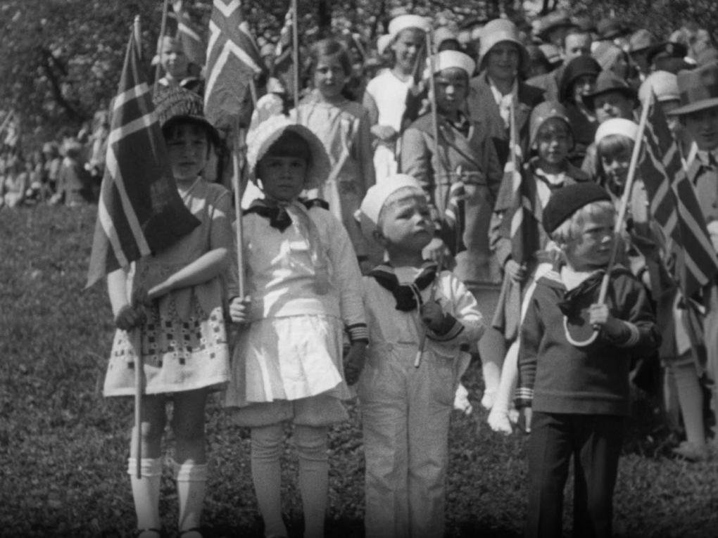 Optog gennem Oslos gader 17. maj, Norges nationaldag, i 1920. Kilde: Nasjonalbiblioteket (Norge), filreference:…