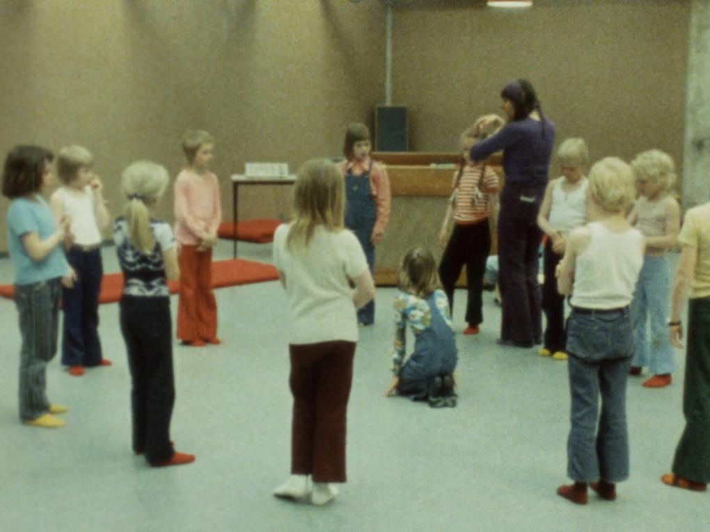 Lotte Kærså viser sin undervisningsmetode sammen med en 1. og en 4. klasse fra Værebro Skole i Gladsaxe.