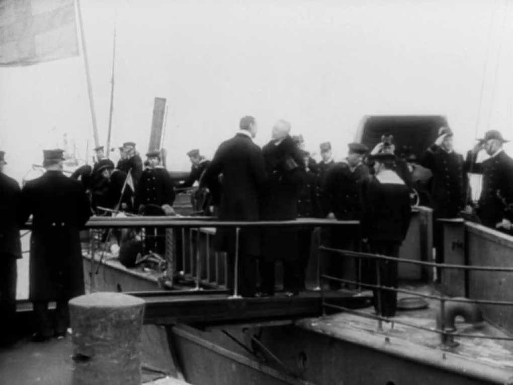 Den svenske kong Gustavs V's besøg i København d. 4. februar 1917. På Toldboden modtages han af kong Christian 10. og…