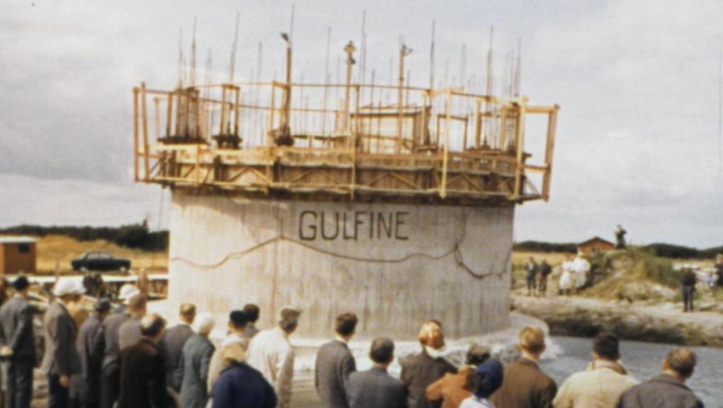 Gulf Oils nye olieraffinaderi ved Stigsnæs nær Skælskør opføres. Anlægsarbejdet følges fra det første spadestik på både selve raffinaderiet og de store anløbskajer, hvor tankskibene skal lægge til.